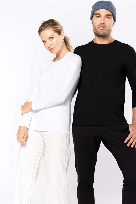 97% katoen / 3% elasthan. Chiné kleuren: 87% katoen / 9% viscose / 4% elasthan. Ronde hals. Dubbel stiksel aan mouwuiteinden en onderkant. De moderne getailleerde snit zijn volgens de laatste modetrends.