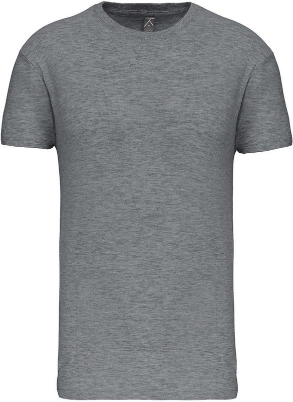 Effen kleuren : 100% katoen. Kleur Ash Heather 98% katoen / 2% viscose en Oxford Grey : 90% katoen / 10% viscose. Alle kleuren zijn gemaakt van biologisch katoen. De labels OCS (Organic Content Standard) en OCS Blended worden afgeleverd door Ecocert Greenlife. Ronde hals in ribboord met elasthan. Ton-sur-ton nektape. Buisvormig. Dubbel stiksel aan mouwuiteinden en onderkant.