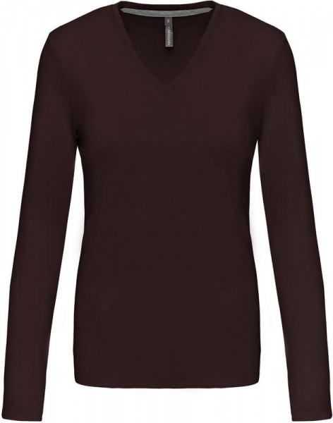 Kariban Dames t-shirt V-hals lange mouwen