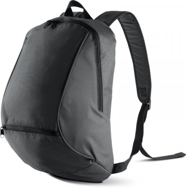 Rugzak van 600D polyester. Hoofdvak met binnenvak en voorvak met rits.