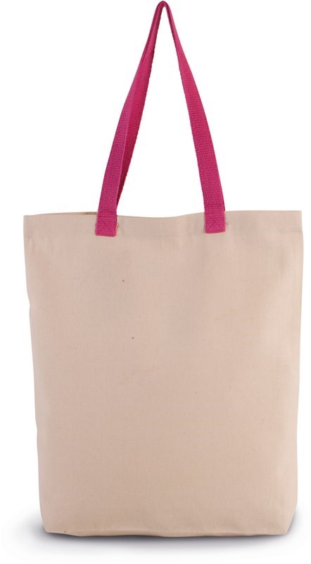 Klassieke shopper van katoencanvas met plooi. Hengsels van katoen in een contrasterende kleur.