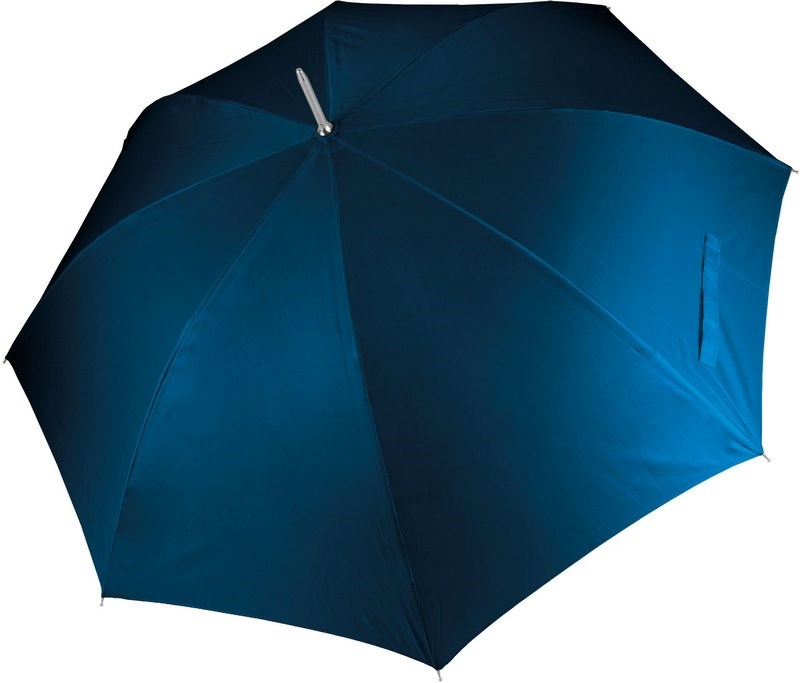 Golfparaplu 23 inch (58,5 cm), gaat automatisch open, 10 mm dikke zwartmetalen stok, zwarte baleinen van glasvezel, metalen punten, golfhandvat van polycarbonaat matte afwerking, 210T polyesterdoek.