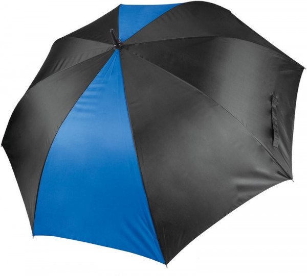 Golfparaplu 26" (66 cm) baleinlengte in 210T polyester. Automatische opening. Zwarte metalen stok 14mm dik. Zwart glasvezel frame. Metalen punten. et klittenbandsluiting. Golfhandvat van polycarbonaat gegomde afwerking.