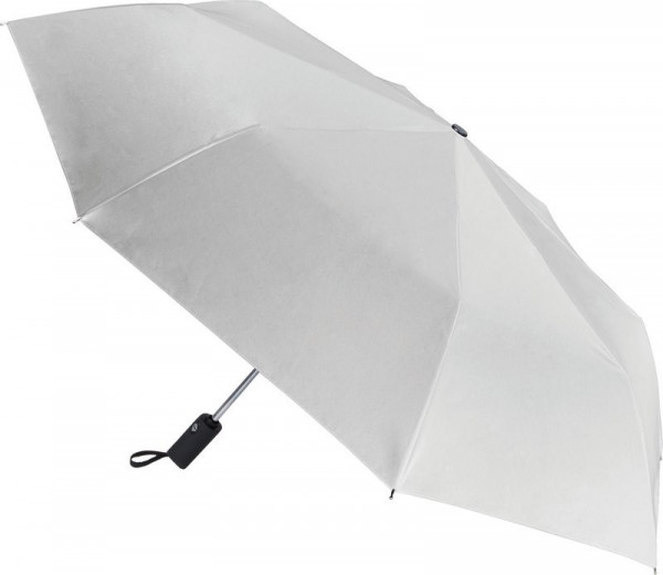 Opvouwbare mini-paraplu 21" (54cm), 3-voudig inklapbaar, automatisch open en dicht, baleinen van aluminium/glasvezel en stok van metaal, stevig pongee zijde, rubberen handvat, nikkelen metalen punten.