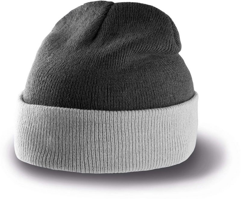 100% acryl. Gebreide muts met omslag in contrastkleur.