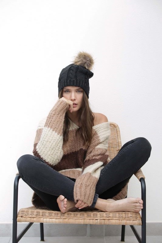 Gebreide muts van 100% acryl met pompon van polyester.meer