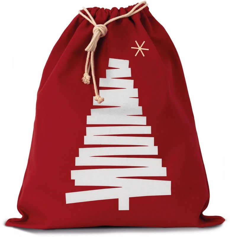 220 g/m². 100% katoen. Katoenen tas met trekkoord en gedrukte dennenboom. 38x45cm.