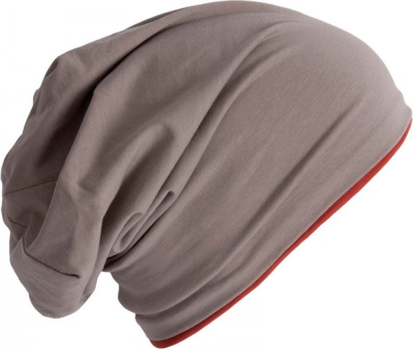 94% katoen / 6% elastaan. Muts van jerseytricot. De tweekleurige versie is omkeerbaar. Oversized stijl.