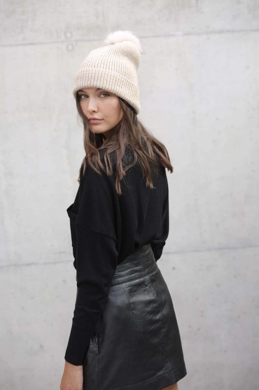 70% polyester, 30% acryl. Pomponmuts gebreid met gerecycled polyester en acryl. Het GRS-label...meer