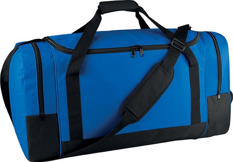 (Team)sporttas van 600D polyester. 2 zakken aan de zijkanten en een schoenencompartiment, verstevigde en afneembare schouderband. Transparante etikethouder voor gemakkelijke identificatie. Middelgroot model: 55 liter.