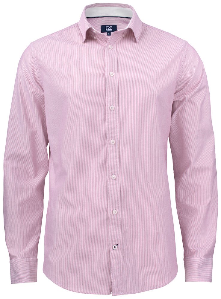 Cutter & Buck - Belfair Oxford Shirt Heren Burgundy/Wit gestreept 4XL