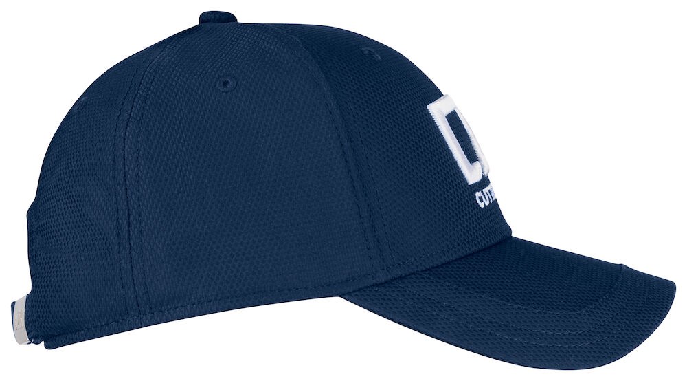 Cap in technisch gestructureerde stof maar met behoud van de klassieke look. Constructie met vijf panelen voor een geweldige vorm en extra ventilatiegaten voor transpiratie. Kenmerkend Cutter & Buck geborduurd logo aan de voorkant en metalen sluiting aan de achterkant voor eenvoudig verstellen.