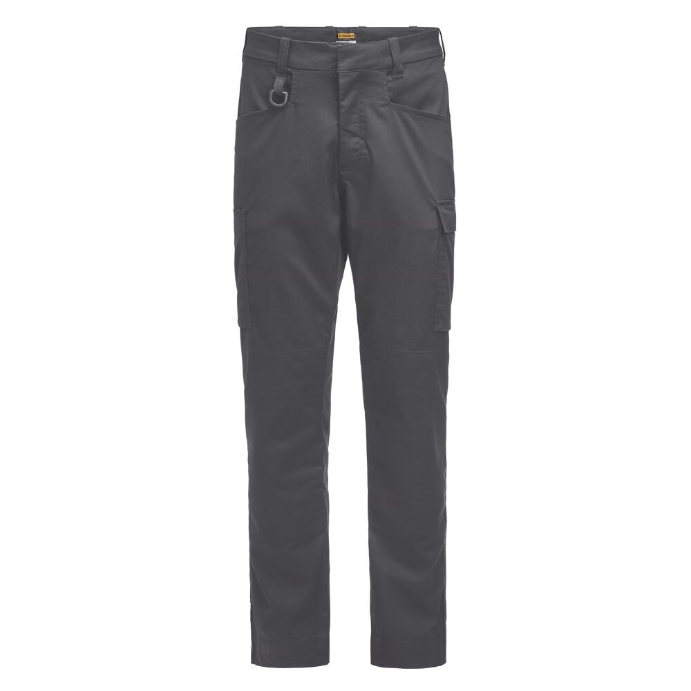 Servicebroek met stretch. Verborgen knoop aan de voorkant voor "Non-scratch" ontwerp. Beenzak aan de rechterkant met ruimte voor een meetlint en beenzak aan de linkerkant met klepzak voor pennen. D-ring aan de voorste riemlus voor een ID-kaarthouder. Kniebeschermingszak aan de binnenkant.