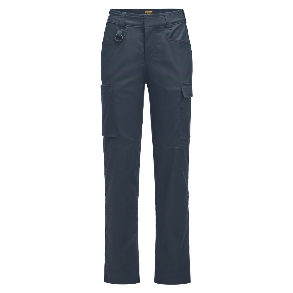 Servicebroek met stretch. Verborgen knoop aan de voorkant voor "Non-scratch" ontwerp. Beenzak aan de rechterkant met ruimte voor een meetlint en beenzak aan de linkerkant met klepzak voor pennen. D-ring aan de voorste riemlus voor een ID-kaarthouder. Kniebeschermingszak aan de binnenkant.