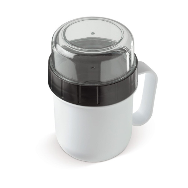 Ideale beker met twee compartimenten. De grote drinkbeker voor uw yoghurt of soep en het kleine compartiment voor de muesli, fruit of croutons. Zo blijft alles heerlijk vers en knapperig.