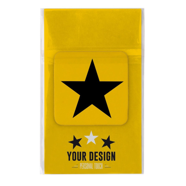 Microvezel sticky cleaner (35x35mm) om het beeldscherm van de telefoon te reiningen. Is eenvoudig op de achterkant van de telefoon te plakken. Per stuk verpakt op inlaykaart in eigen opmaak. Verpakt in een zakje. Inclusief full-colour all-over bedrukking op cleaner en inlegkaart.