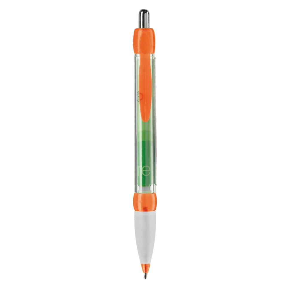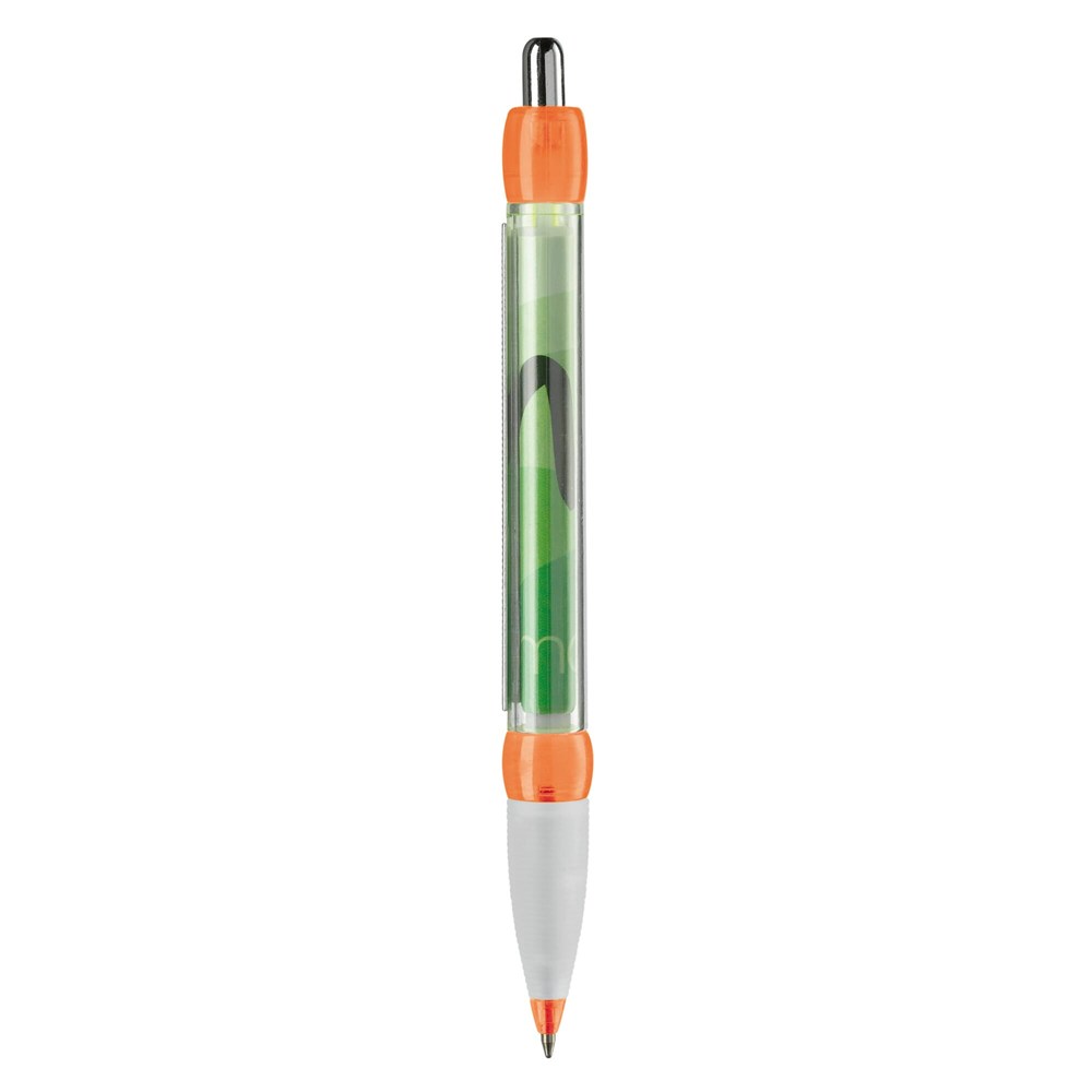 Transparante balpen met rubberen grip. Met full-colour banner bedrukking aan twee zijden. Blauwschrijvende X20 vulling. Bedrukking op de houder of clip mogelijk.