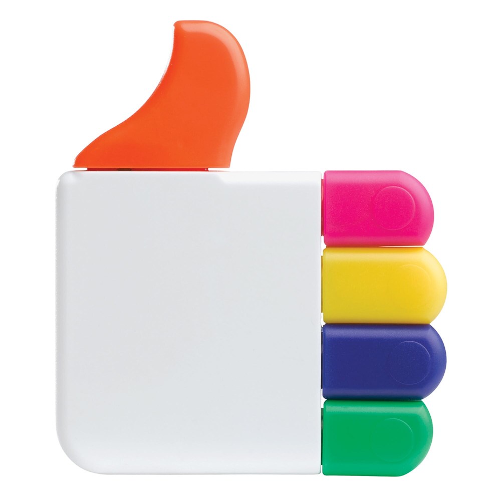Toppoint design markeerstift in de vorm van de welbekende 'like'knop. De vingers zijn verschillende kleuren markeerstiften en kunnen stuk voor stuk uit de hand worden gehaald.