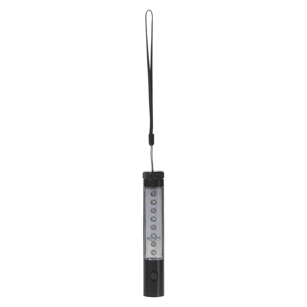 Aluminium zaklamp met LED verlichting aan de voorzijde en de zijkant. In te stellen op continu of knipperlicht. Achterzijde voorzien van magneet. Wordt inclusief polsband en batterijen geleverd. In geschenkverpakking verpakt.