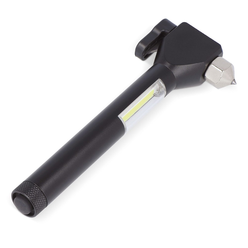 Noodhamer die is uitgerust met een scherpe punt om een autoraam te breken. Verder heeft deze tool een gordelsnijder, een magneet en een COB-lamp. Deze veiligheidshamer mag niet in de auto ontbreken. De magneet kan eenvoudig op metalen oppervlaktes vastgemaakt worden.