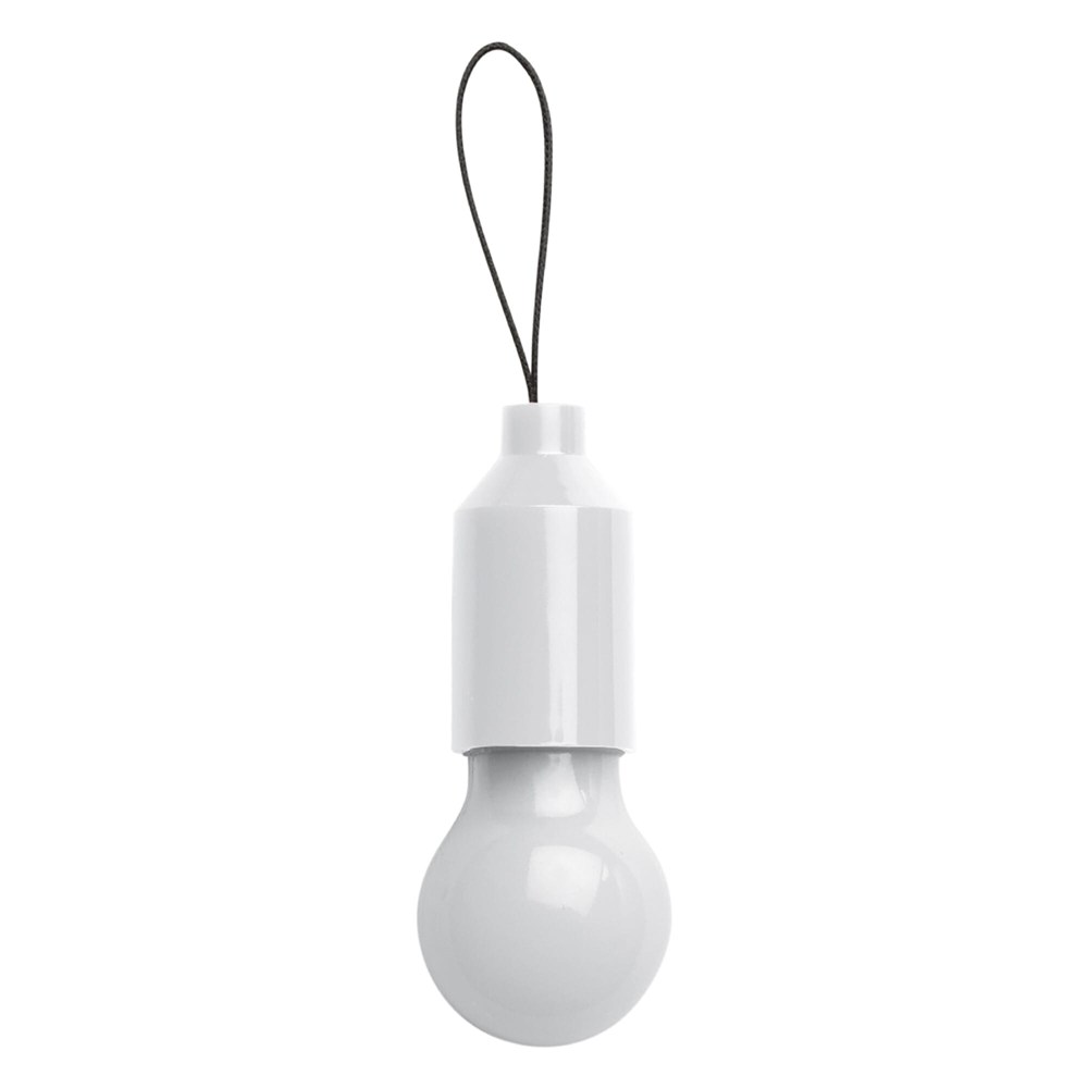 Kleine sleutelhanger in de vorm van een gloeilamp. Gaat eenvoudig aan door aan het gloeilampje te trekken. Het lampje bevat één LED die tien lumen levert en is gemaakt van ABS. Batterijen meegeleverd.