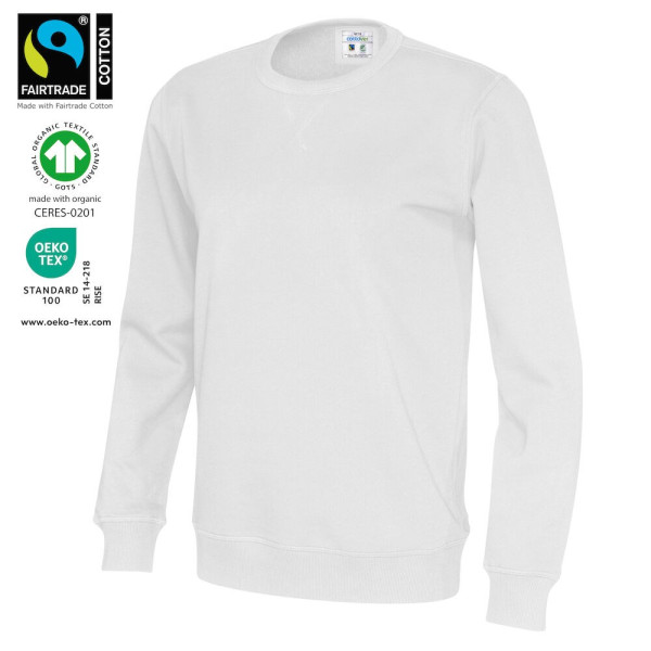 Sweater met ronde hals en decoratieve flatlock naden aan de schouders en armopening. Kruis in flatlock onder de kraag en ribboord aan de hals, manchetten en de zoom onderaan.